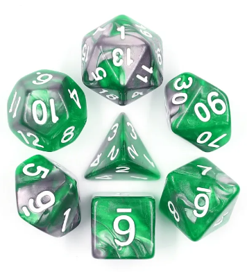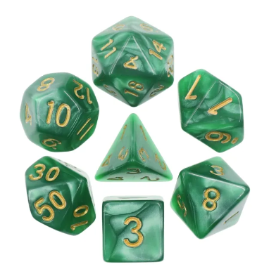 Acrylic Pearl Grass Green With Gold Lettering Dice