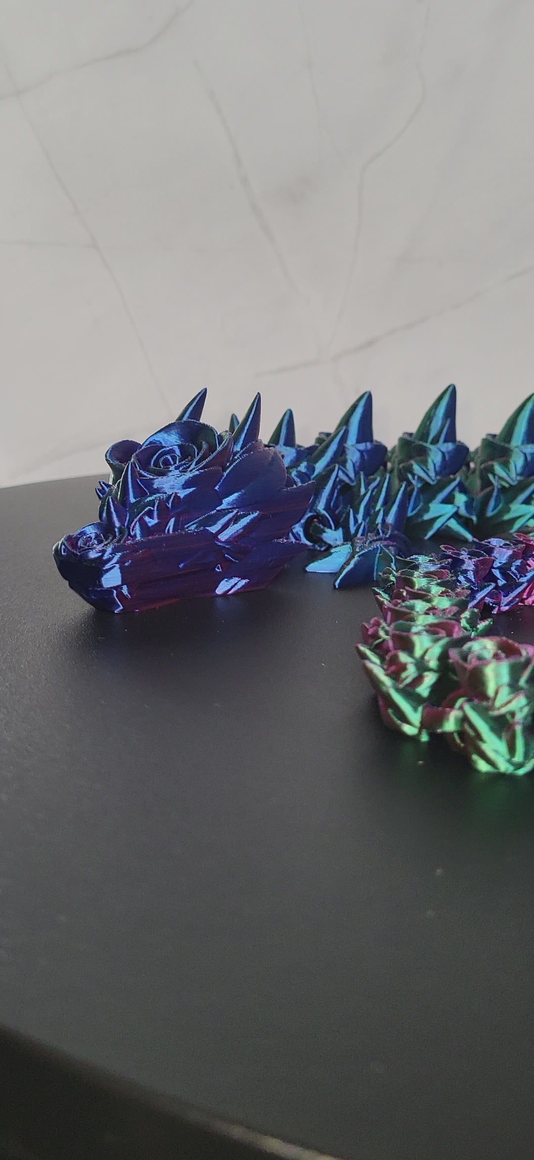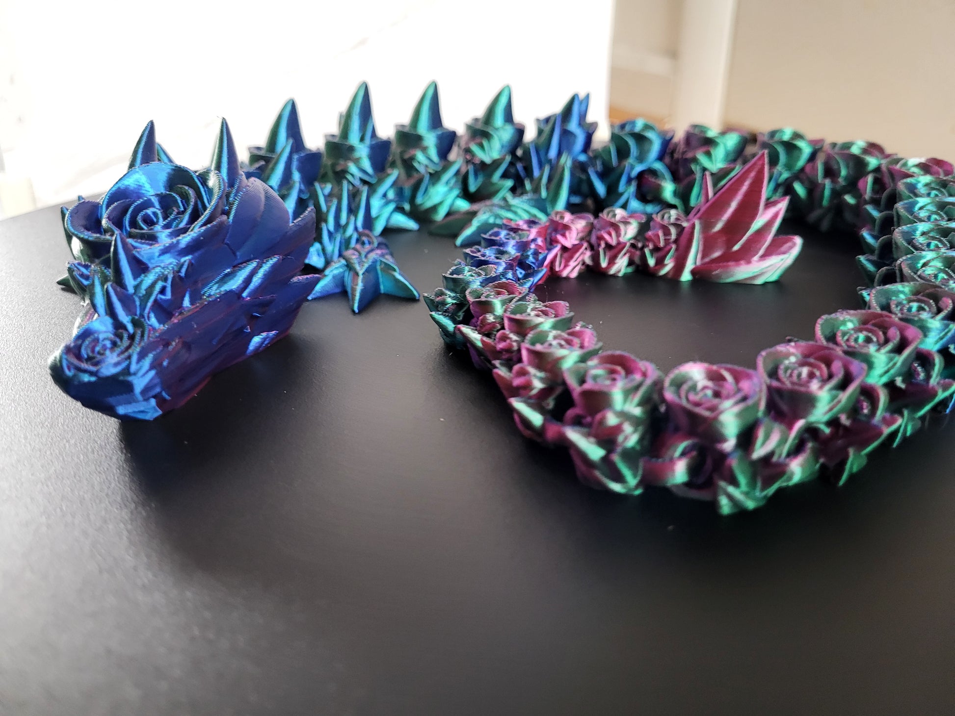 Unleash the magic of imagination with our 3D Printed Articulated Rose Dragon. This enchanting creation blends the grace of a rose with the majesty of a dragon, intricately designed and articulated for dynamic poses. Crafted with precision, this unique piece serves as both a captivating display and a source of endless fascination. Let this stunning masterpiece add a touch of fantasy and wonder to your collection, igniting the flames of creativity in any space it graces.