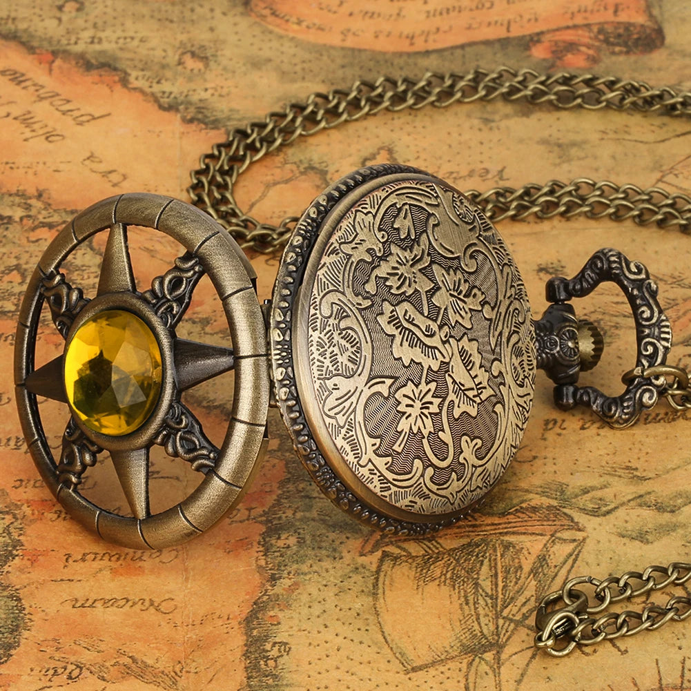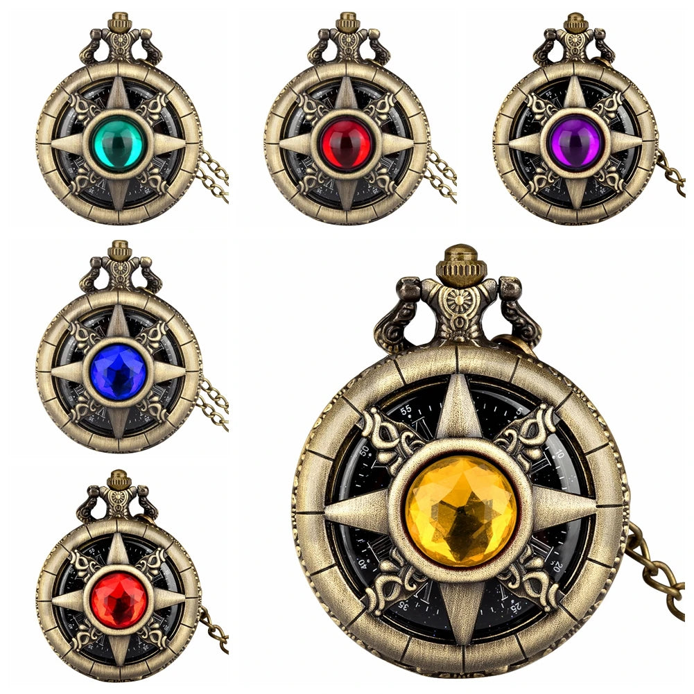 Discover elegance and functionality with our Compass Design Gemstone Pocketwatch. This exquisite timepiece features a stunning compass design, gemstone embellishments, and a starry sky dial. A perfect blend of style and practicality for the modern explorer.