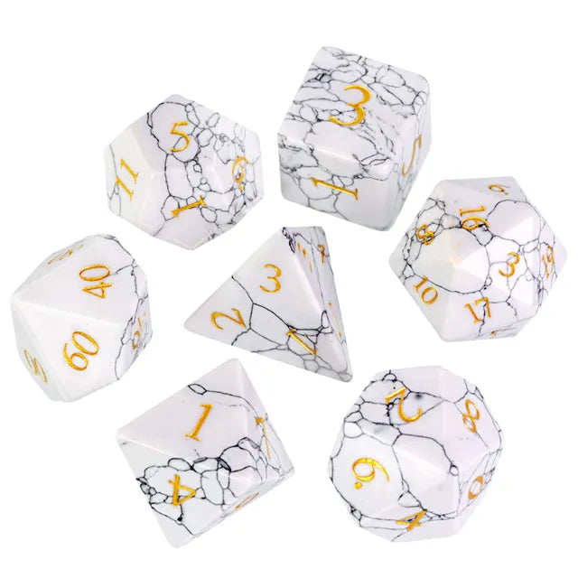 Enhance your gameplay with dice that are as captivating as the stories you create. The Howlite Dice Set is more than just a gaming accessory—it's a statement of your refined taste and appreciation for natural beauty.